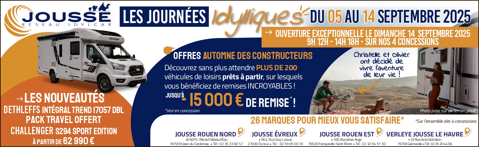 Idylcar c’est, avant tout, un réseau de concessionnaires de véhicules de loisirs (camping-cars, fourgons, vans et caravanes). Né en 2001, il est devenu en plus de 20 ans le plus grand réseau d’indépendants en France. Nos dirigeants propriétaires sont à vos côtés pour vous accompagner dans tous vos projets.