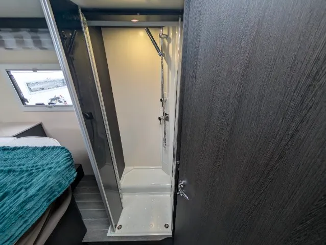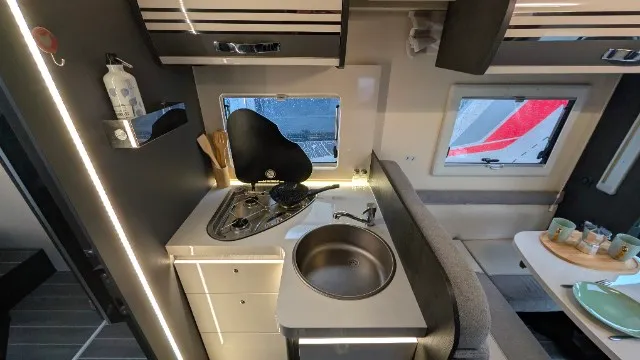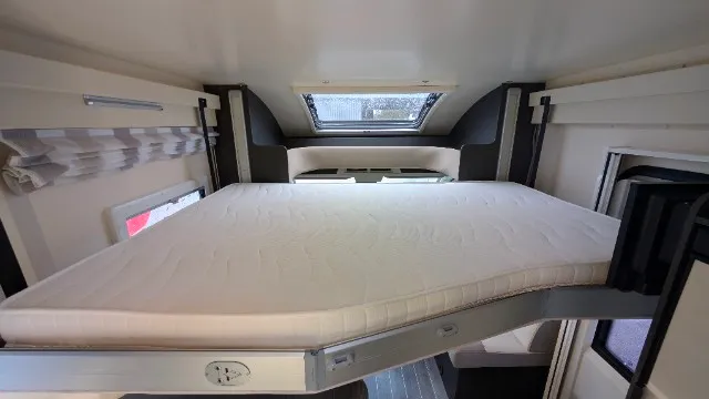 FORD 165CV – BVA, diesel, 24/05/2025, *PACK KRONOS FORD comprenant:, 1.1 Motorisation 165 CV, 1.2 Feux diurnes/Boîte à gants avec serrure, 1.3 Habillage intérieur et tableau de bord finition « Trend », 1.4 P-C et DBDC latérales peints couleur de la carrosserie, 1.5 Porte XL avec 2 points de ferm, fenêtre et ferm centra, 1.6 Panneau solaire 200W avec régulateur MPPT, 1.7 Stores occultants plissées cabine, 5° Place homologuée, Caméra de recul, Capteurs de stationnement avant, Chauffage Truma combi 4 gaz (4000W), Frein à main électrique, Lit de pavillon électrique, Régulateur de vitesse (Cruise control) avec « ISA », Réservoir Diesel 70L, Skyroof, Système de freinage avec atténuation de collision N2, Tableau de bord semi-numérique de 8″, Tissu Chenille [tissu + similicuir], Transformation de la dinette en lit (lits supplémentaires), PACK SELEKT